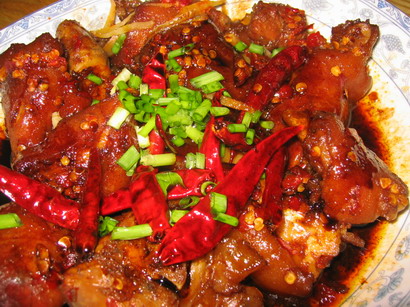 原料:猪手 姜 葱 八角 花椒 绍酒 冰糖 盐 味精 红辣椒 香叶 酱油 白胡椒 湖南剁椒 砂糖 香醋